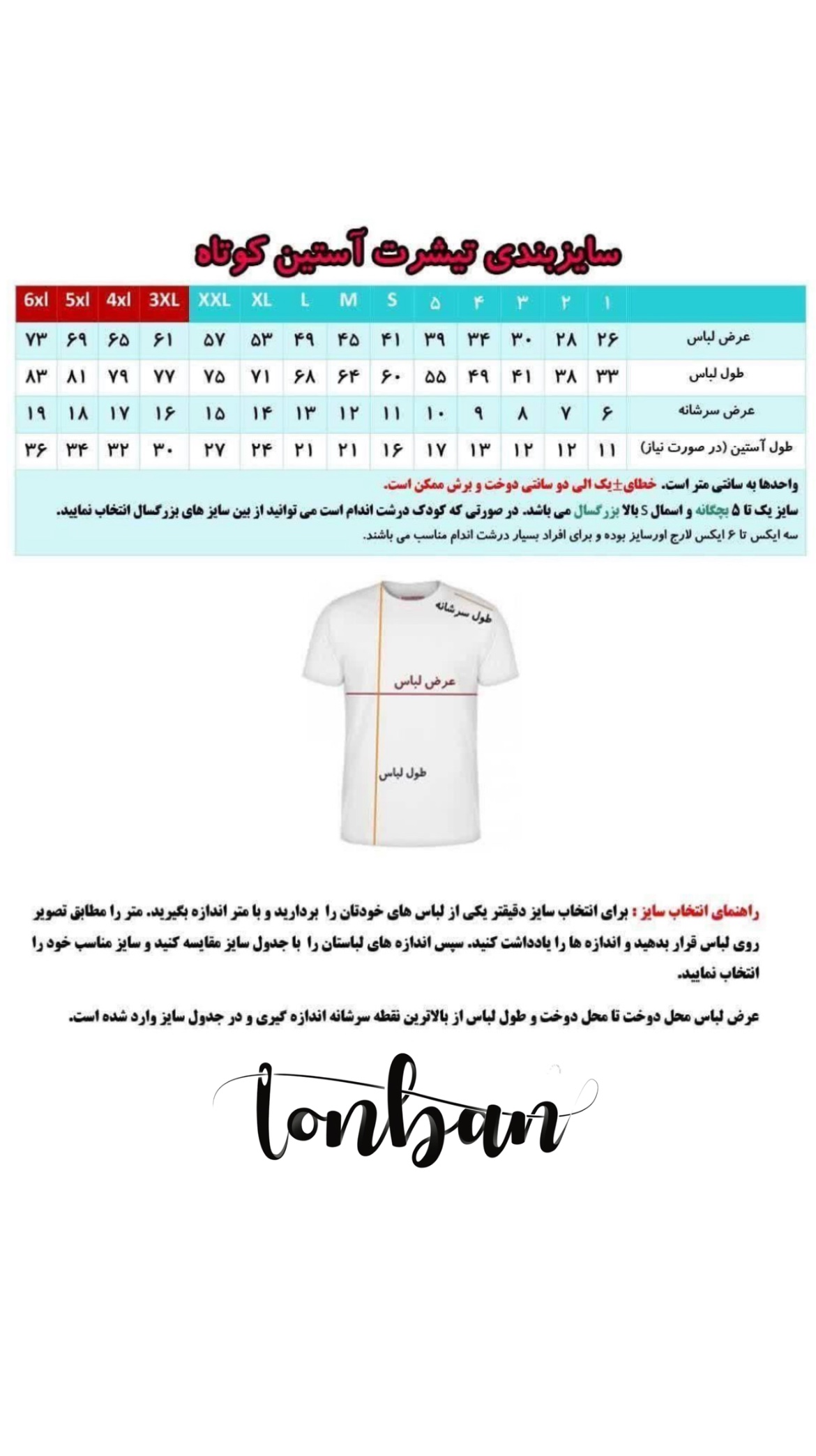 قد تیشرت،عرض سرشانه، عرض سینه مطابق جدول سایزبندی در نظر گرفته میشود.(عکس اخر)