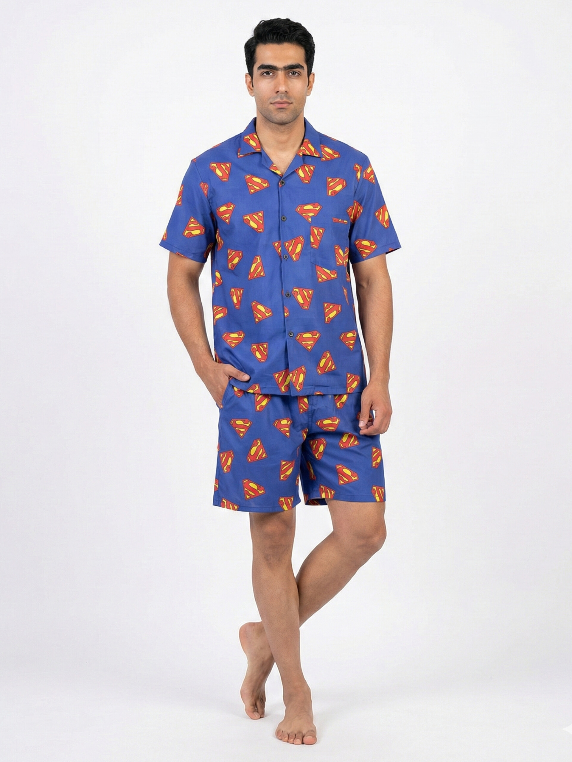 ست شامل پیراهن مردانه یقه انگلیسی و شلوارک میباشند