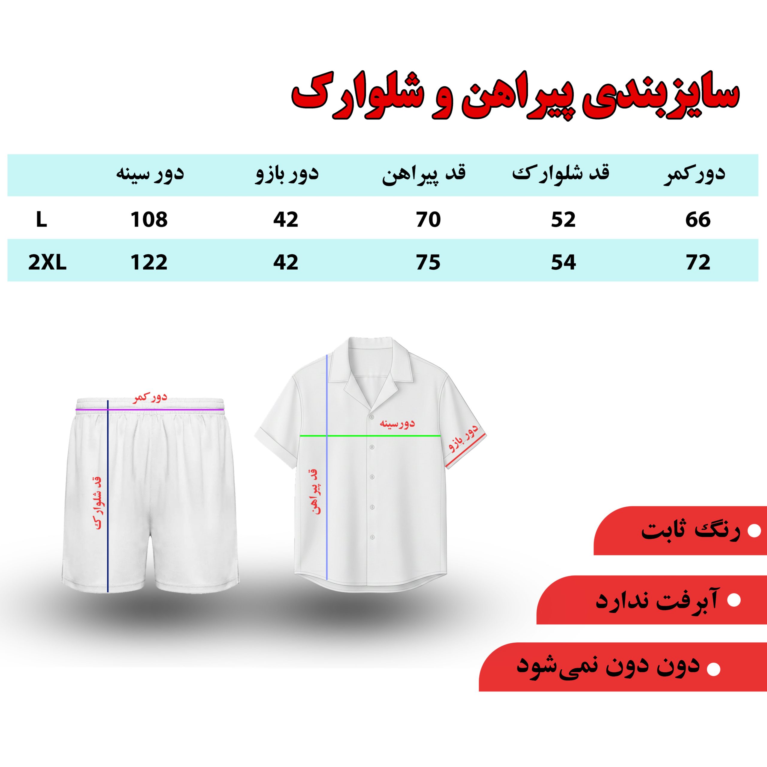 این ست دارای پیراهن مردانه آستین کوتاه یقه انگلیسی مردانه و شلوارک جیب دار مردانه میباشد.